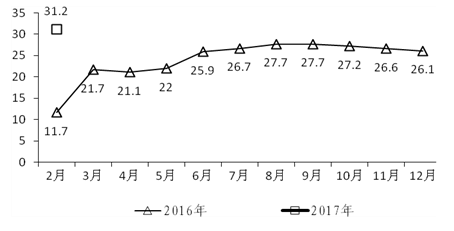2017年1-2月各州市规模以上工业增加值增长表